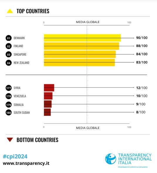 Maggiori informazioni sul CPI 2024 sono disponibili su transparency.it/indice-percezione-corruzione