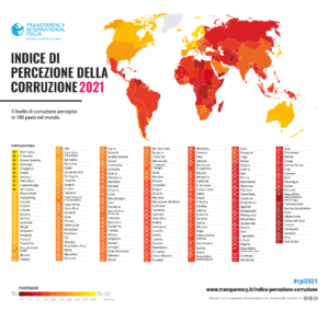 Transparency International pubblica oggi l’edizione 2021 dell’Indice di Percezione della Corruzione (CPI).
