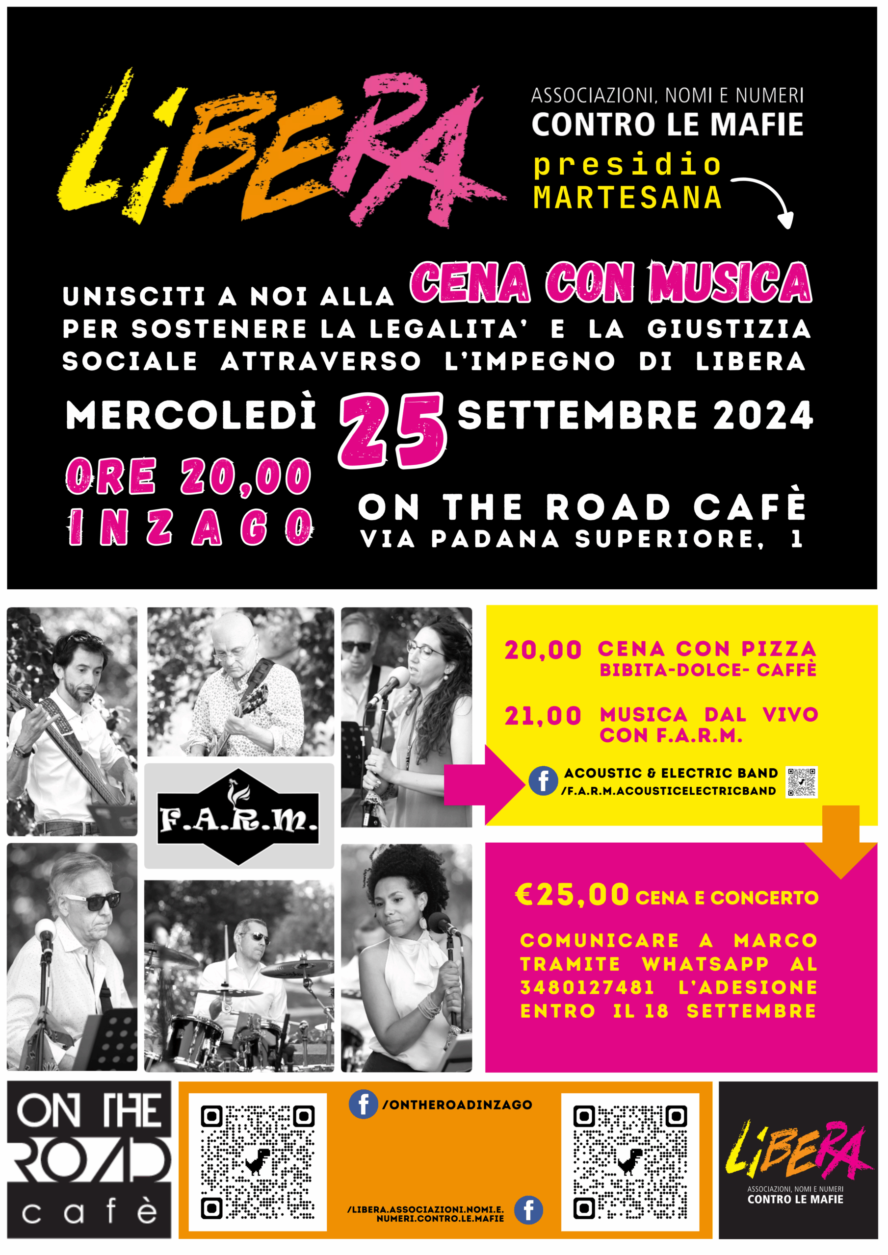 Siete tutti invitati a Inzago il 25 settembre 2024 ore 20,00 presso On The Road Cafè – Via Padana Superiore, 1.