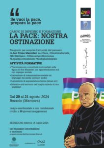 Il campo è aperto alla partecipazione di giovani maggiorenni interessati a conoscere il pensiero di don Primo Mazzolari su alcuni temi di attualità legati alla pace, alla giustizia sociale, ai diritti umani, all’obiezione di coscienza ed alla legalità democratica, all’ecologia integrale.