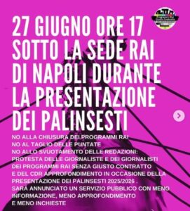 Per questo il 27 giugno saremo a protestare fuori dalla sede Rai di Napoli, in concomitanza con la presentazione dei palinsesti 2025/2026.
