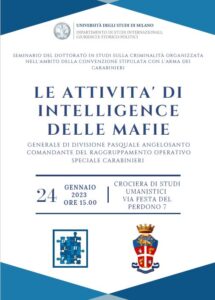 L’individuazione e la prevenzione delle attività di intelligence svolte dalle mafie sono i temi al centro dell’incontro proposto dal Dottorato di ricerca in Studi sulla criminalità organizzata dell’Università Statale di Milano, nell’ambito della convenzione con l’Arma dei Carabinieri.