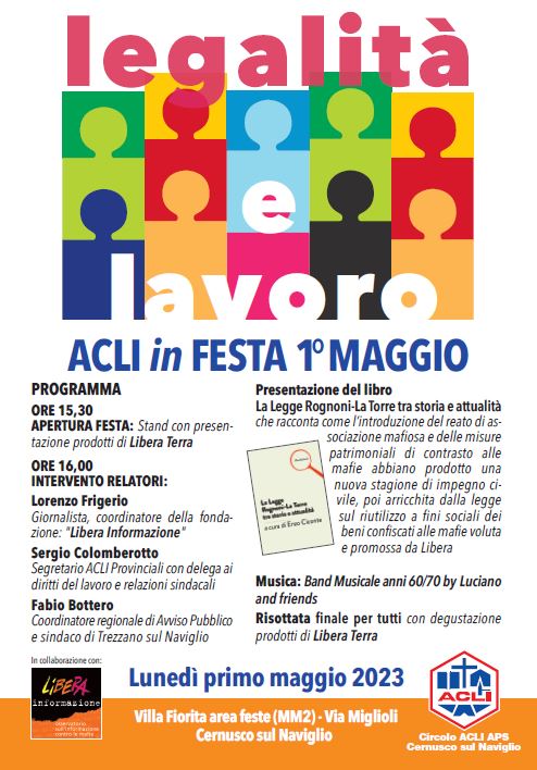 Il circolo ACLI di Cernusco sul Naviglio, in provincia di Milano, ha scelto di organizzare per lunedì 1 Maggio un pomeriggio all’insegna della legalità, della cultura ma anche della socialità e della solidarietà.
