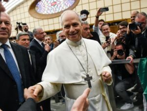 Grazie, cari amici, per il vostro servizio alla verità. Voi siete stati a Roma in queste settimane per raccontare la Chiesa, la sua varietà e, insieme, la sua unità. Avete accompagnato i riti della Settimana Santa; avete poi raccontato il dolore per la morte di Papa Francesco, avvenuta però nella luce della Pasqua. Quella stessa fede pasquale ci ha introdotti nello spirito del Conclave, che vi ha visti particolarmente impegnati in giornate faticose; e, anche in questa occasione, siete riusciti a narrare la bellezza dell’amore di Cristo che ci unisce tutti e ci fa essere un unico popolo, guidato dal Buon Pastore.