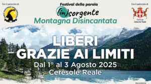 È in questo scenario che il prossimo 1° agosto inizierà la terza edizione di “La montagna disincantata”, festival della Parola (in)sorgente. Per tre giorni Ceresole diventerà laboratorio di una cultura senza compartimenti stagni: incontri con autori e testimoni, letture e concerti inframmezzati da passeggiate e momenti conviviali, restituiranno voce a un luogo che ha molto da raccontare a chi abbia voglia di fermarsi e ascoltare.