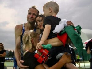 Così quella gara non poteva terminare che in braccio a sua moglie e i suoi figli, il segno della fine della carriera di un campione che il mondo dello sport non ha saputo e voluto capire.