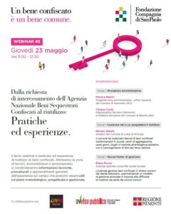 Dopo gli appuntamenti del 9 e del 16 maggio, prosegue con il terzo incontro il ciclo di conferenze online “BENI IN RETE 3.0: Obiettivo Piemonte”, promosso dalla Compagnia di San Paolo in collaborazione con Avviso Pubblico, Libera Piemonte e Regione Piemonte.