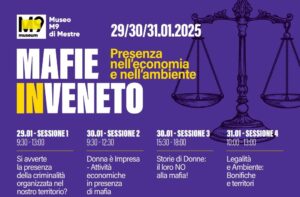 La Sezione regionale del Veneto dell’Albo Gestori Ambientali, insieme a Unioncamere del Veneto, LIBERA: Associazioni, nomi e numeri contro le mafie A.P.S e il Comitato Imprenditoria Femminile della CCIAA Venezia Rovigo, organizzano la seconda edizione della manifestazione “Mafie in Veneto: presenza nell’economia e nell’ambiente”, che si terrà in presenza presso l’Auditorium del complesso museale M9 | Museo del ‘900 (Via Pascoli 11, Mestre- Venezia) dal 29 al 31 gennaio 2025.