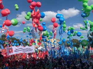 Quella di Roma era una piazza felice, ricca di colori e di speranza; la piazza che vuole la vita e vuole ripartire per creare un nuovo futuro a questo paese dicendo una volta per sempre no al fascismo.