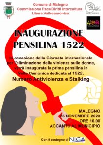In occasione della Giornata internazionale per l’eliminazione della violenza sulle donne, il prossimo 25 novembre, a Malegno, verrà inaugurata alle ore 16 una pensilina 1522, il numero antiviolenza e stalking al quale le donne in difficoltà possono rivolgersi per chiedere aiuto.