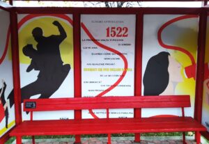 La pensilina, situata accanto al Municipio e destinata alla fermata degli autobus, ospita già una panchina rossa realizzata durante gli scorsi anni all’interno del percorso delle “Panchine dei diritti” e verrà arricchita con dei pannelli che vogliono rappresentare il tema della violenza sulle donne in modo originale e creativo. Tutta la struttura verrà ridipinta di colore rosso e vuole rappresentare una “fermata” per riflettere su questo enorme problema che sempre più invade le nostre comunità e che va combattuto, a nostro avviso, anche con dei segni di grande impatto visivo, come sarà appunto questa installazione.
