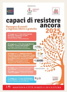 Libera Mantova con il Comune di Mantova, e con il patrocinio di Avviso Pubblico, organizza la rassegna “Capaci di resistere ancora” che trova spazio nel periodo che ruota attorno al 23 Maggio.