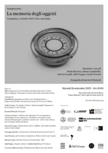 Si terrà martedì 26 settembre alle 18.00 a Milano, presso il Memoriale della Shoah di Milano, (Piazza Edmond j. Safra 1), l’inaugurazione della mostra “La memoria degli oggetti. Lampedusa, 3 ottobre 2013. Dieci anni dopo. Oggetti, fotografie inedite e testimonianze per dare dignità e valore alla vita e costruire una memoria condivisa”.