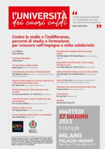 Evento organizzato nell’ambito del rinnovo della convenzione tra LIBERA e Accademia di Belle Arti di Brera, Università degli Studi di Milano Bicocca, Università degli Studi di Milano, Università Bocconi, Università Cattolica del Sacro Cuore di Milano, Humanitas, IED Istituto Europeo di Design, IULM Libera Università di Lingue e Comunicazione, NABA Nuova Accademia di Belle Arti, Politecnico di Milano, Università Vita – Salute San Raffaele