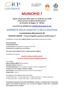 Al termine del convegno la Presidente del Municipio 7 passerà il testimone della “Fiaccola della Legalità” al Presidente del Municipio 2 per i percorsi di “Legalità e Giustizia 2023” nei quartieri della periferia nord-est di Milano.