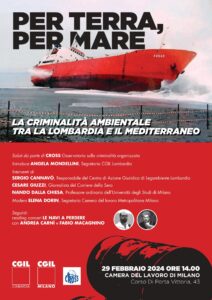 Il 29 febbraio 2024, alle ore 14.00 presso la Camera del Lavoro di Milano (Corso di Porta Vittoria 43) avrà luogo Per terra, per mare. La criminalità ambientale tra la Lombardia e il Mediterraneo.