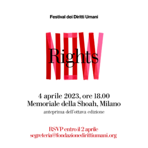 “Rights Now”: diritti ora invece di guerre, diritti ora invece disuguaglianze sociali, diritti ora invece dell’opacità dell’intelligenza artificiale. È il titolo della prossima edizione del Festival dei Diritti Umani, la prima organizzata dalla Fondazione dei Diritti Umani ETS, in programma dal 3 al 6 maggio dal vivo presso il Memoriale della Shoah di Milano e la Cineteca Milano Arlecchino – e online su festivaldirittiumani.stream.