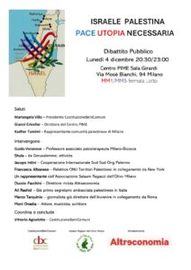 Milano 4 dicembre: “Israele Palestina, pace utopia necessaria”