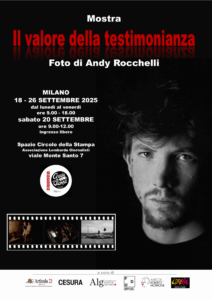 Associazione Lombarda Giornalisti, Collettivo Cesura, Fondazione Diritti UmaniOrdine dei giornalisti della Lombardia presentano la mostra “Il valore della testimonianza – Le foto di Andy Rocchelli” allo Spazio Circolo della Stampa in viale Montesanto 7, dal 18 al 26 settembre.