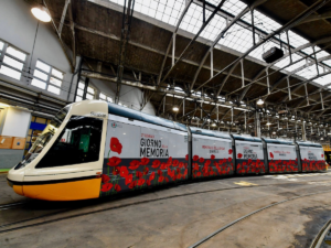 Insieme alla posa delle pietre di inciampo sono state presentate molte altre iniziative, tutte con un unico grande fine: mantenere viva la memoria su quanto accaduto e far conoscere i luoghi della città legati a questo momento, primo fra tutti il memoriale della Shoah – Binario 21 (piazza Edmond J. Safra 1 – ex via Ferrante Aporti 3), da dove partirono i treni dei deportati. Lo scorso novembre, su impulso della senatrice Segre, l’Amministrazione comunale si era impegnate a far conoscere più diffusamente dove si trovasse il memoriale e come raggiungerlo. Da lì la proposta di personalizzare un tram ATM dedicandolo al Giorno della memoria e al Memoriale della Shoah – Binario 21. La proposta è così divenuta progetto e quindi realtà: da domani il “Tram della memoria” inizierà a circolare con una livrea nuova caratterizzata da una distesa di papaveri simbolo di memoria, speranza e rinascita. Sulla fiancata le scritte “27 gennaio – Giorno della memoria” e “Memoriale della Shoah – Binario 21 – Stazione Centrale”. Il tram completamente accessibile viaggerà sulla linea 9 appositamente scelta da ATM per il suo percorso cittadino con destinazione Stazione Centrale. Il suo capolinea si trova a pochi minuti a piedi dal memoriale della Shoah. Sulla vetrata dell’ingresso, in piazza Edmond J. Safra 1, una vetrofania identica richiamerà la livrea del tram, a ulteriore indicazione del luogo.