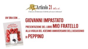 Articolo 21 propone “Un’ora con… Giovanni Impastato”. Sabato 8 maggio, alle ore 12, evento on line con la la presentazione del libro “Mio fratello”, alla vigilia del 43esimo anniversario dell’assassinio di Peppino