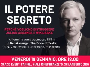 “Il potere segreto. Perché vogliono distruggere Julian Assange e Wikileaks” è il titolo del dibattito che si tiene venerdì 19 gennaio 2024 nello spazio eventi Famigli di Spilamberto (Modena).