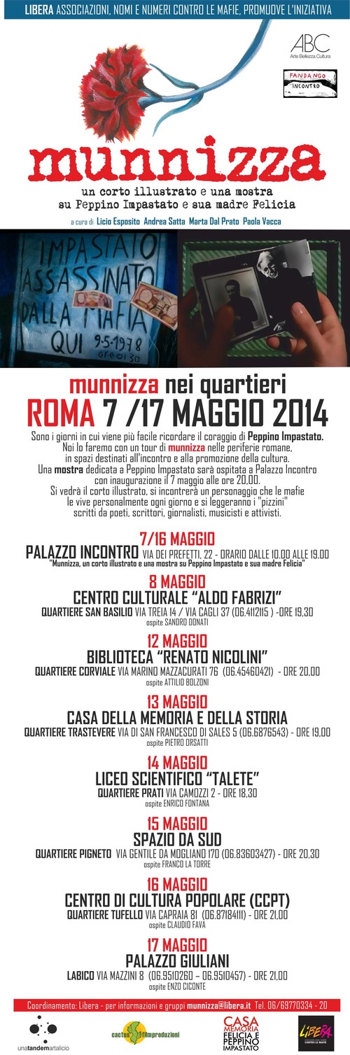 L’appuntamento – Dal 7 al 17 maggio a Roma, Munnizza nei quartieri. Sono i giorni in cui viene più facile ricordare il coraggio di Peppino Impastato. Noi lo faremo con un tour di Munnizza nelle periferie romane, in spazi dedicati all’incontro e alla promozione della cultura.