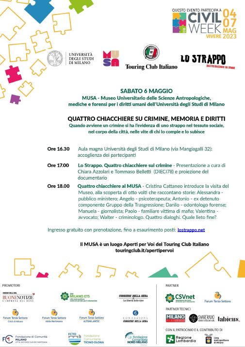 MUSA, Milano 6 maggio: “Quattro chiacchiere su crimine, memoria e diritti”