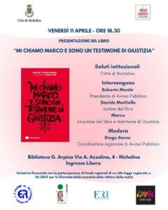 Il Comune di Nichelino (TO), in collaborazione con Avviso Pubblico, promuove la presentazione del libro “Mi chiamo Marco e sono un testimone di giustizia” (Einaudi ragazzi, 2025) di Davide Mattiello.
