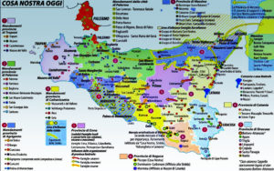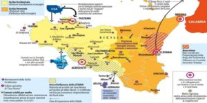 Le due carte fotografano la differenza tra la Sicilia occidentale, terra di famiglie e ‘mandamenti’, e la Sicilia orientale, dove la spartizione territoriale è meno determinante. Tra la provincia di Agrigento e quella di Gela è diffusa la ‘stidda’, un’altra organizzazione criminale di tipo mafioso pronta ad alleanze funzionali con Cosa Nostra. La stidda è a sua volta proiettata nell’economia legale del Centro-Nord (Roma, Brescia, Milano, Torino), collegata alla ‘ndrangheta in Calabria e in contatto con le sue ramificazioni internazionali in Germania e Belgio.