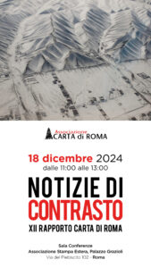 Mercoledì 18 dicembre 2024 dalle 11 alle 13, presso presso la Sala della Stampa Estera (Palazzo Grazioli, via del Plebiscito 102, Roma), si svolgerà la presentazione del XII Rapporto Carta di Roma ‘Notizie di contrasto’.
