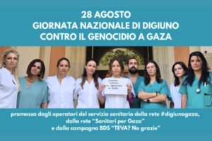 Nonostante fosse agosto la voce comincia a diffondersi, ogni operatore sanitario conosce colleghi, aggiunge Gianelli: “Io ho mandato un messaggio a te perché ti fidi di me, tu fai lo stesso e in questo modo le chat si sono moltiplicate e si è aggiunta una collega del Lazio, uno del Piemonte e uno dell’Emilia Romagna ecc. Insomma, siamo una decina di ‘scappati di casa’ che nel mese delle ferie, oltre a svolgere il proprio lavoro, si è assunto il compito di coordinare questo movimento spontaneo”. Risultato, il 28 agosto sarà la “Giornata nazionale digiuno per Gaza degli operatori e delle operatrici sanitari” .