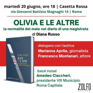 Olivia e le altre è un diario di viaggio denso di emozioni, in cui l’autrice prende per mano il lettore e lo accompagna nel difficile percorso del giudicare. Perché, nonostante gli inciampi e le cadute, non deve mai venir meno la fiducia nella giustizia e nella sua continua ricerca
