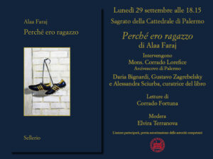 Lunedì 29 settembre, alle ore 18.15, sul sagrato della Cattedrale di Palermo si terrà la presentazione del libro Perché ero ragazzo (Sellerio) di Alaa Faraj.