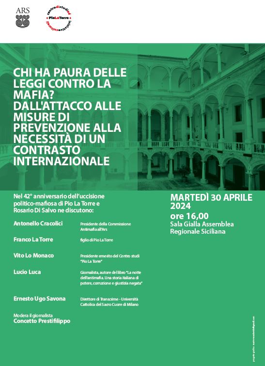 “Chi ha paura delle leggi contro la mafia? Dall’attacco alle misure di prevenzione alla necessità di un contrasto internazionale” è il titolo del pomeriggio promosso in occasione del 42° anniversario dell’uccisione politico-mafiosa di Pio La Torre e Rosario Di Salvo.