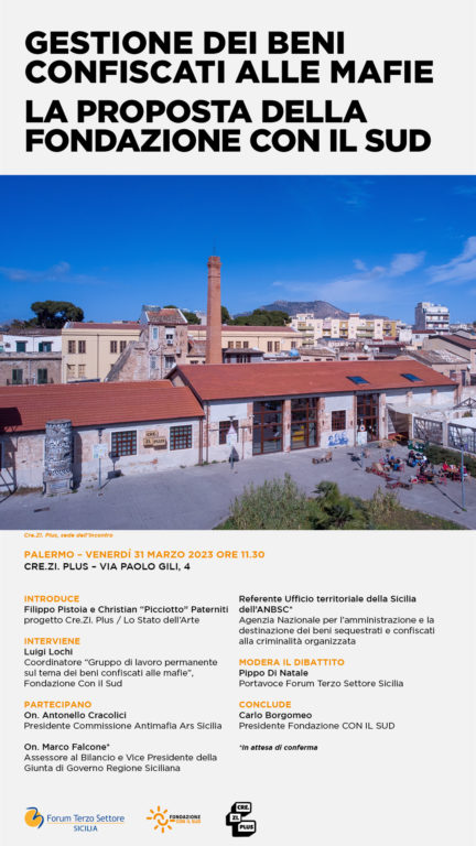 Venerdì 31 marzo alle ore 11:30, presso Cre.Zi. Plus a Palermo, ci sarà il quarto incontro per discutere del tema della gestione dei beni confiscati alle mafie con i progetti e i gestori di beni confiscati del territorio siciliano.