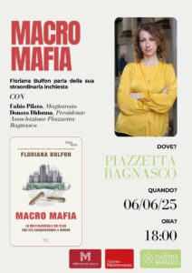 È uno dei primi attesi eventi della stagione 2025 di piazzetta Bagnasco. Ospite di uno degli spazi più amati dai cittadini e non solo sarà la giornalista d’inchiesta Floriana Bulfon che, alle 18 di venerdì 6 Giugno, ci racconterà di “Macro Mafia. La multinazionale dei clan che sta conquistando il mondo”, una straordinaria inchiesta su un fenomeno ancora troppo sottovalutato: il denaro del narcotraffico che compra impunità, si dota di tecnologie d’avanguardia e inquina le nostre economie.