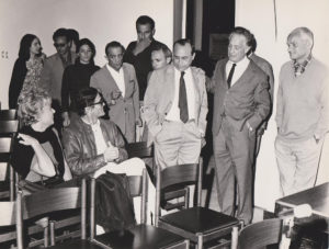 Del luogo, invero disadorno, dello scatto, con certezza non sappiamo: azzarderemmo che si tratti dello stesso albergo “Emmaus”, gestito dai salesiani, dove si svolgeva la cerimonia della premiazione; e comunque, ci piace pensarlo. Perché è proprio nel piazzale antistante quell’albergo che, due anni dopo, Sciascia avrebbe assistito ad una scena di cui sarebbero stati protagonisti giusto degli ex allievi dei salesiani. “Singolari allievi”, avrebbe rimarcato: “quasi tutti notabili della Democrazia Cristiana”; e già in una nota sul Corriere della Sera del settembre 1971, allusivamente intitolata “Esercizi spirituali”, di quella scena avrebbe dato una descrizione terrifica e precisa: “La sera, tutti insieme, recitavano il Rosario: andavano su e giù nello spiazzo avaramente illuminato, a passo svelto, con dei dietrofronti improvvisi, confusi, aggrovigliati; e quanto più si aggrovigliavano tanto più levavano le voci nei pater, negli ave, nei gloria. Con una nota di isteria, di paura. E in quel momento, anche chi (come me) li vedeva nella abietta mistificazione e nel grottesco, scopriva che c’era qualcosa di vero, qualcosa che veramente attingeva all’esercizio spirituale, in quel loro andare su e giù al buio, in quel biascicare preghiere, in quel confondersi e aggrovigliarsi: quella nota di isteria, di paura; quasi che per un attimo si sentissero, disperati, nella confusione di una bolgia, sul punto della metamorfosi. Appunto come nella dantesca bolgia dei ladri. E che l’attimo potesse diventare eternità”.