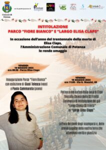 Si terrà venerdì 10 maggio 2024 l’intitolazione del “Largo Elisa Claps” e del Parco “Fiore Bianco”. Nonostante siano trascorsi trent’anni dalla scomparsa di Elisa, Potenza non dimentica e le rende omaggio.