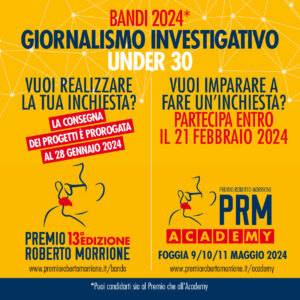L’associazione Amici di Roberto Morrione ha deciso di prorogare di una settimana la scadenza di partecipazione al bando della 13^ edizione del Premio Roberto Morrione per il giornalismo investigativo.