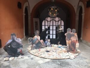 Di nuovo mi sentii inadeguato quando schierai sul pavimento quel meraviglioso popolo di statuine. Mi chiesi se potessi presentare ai miei figli oltre che a me stesso un presepe senza segni di quanto stava accadendo. Svuotai dunque la grotta del Bambino, feci fare marcia indietro alle statuine, che si inerpicarono sugli scaffali della mia libreria lasciando vuota Betlemme alla volta di una località sconosciuta e lontana dove, sotto altre stelle, si sarebbe realizzata per protesta la nuova Natività.