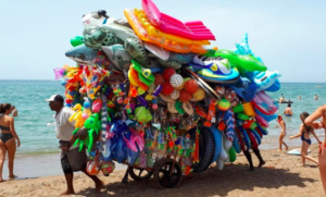 Non posso non pensare che un’estate non troppo lontana quelli come lui furono a furor di popolo indicati come portatori di nequizie e di violenza. Da arrestare a vista. Ne nacque una grande campagna di pulizia etnica balneare. Vedo i bimbi assembrarsi felici intorno a lui, portatore del suo rarissimo bazar, e penso che, anziché di venditori ambulanti di ideologie, questo paese e i suoi abitanti avrebbero un bisogno senza fine di venditori ambulanti di sogni, sogni veri.