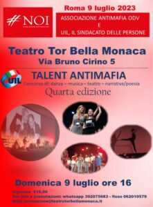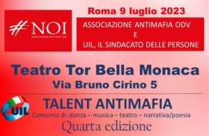 La finalissima si svolgerà il 9 luglio, dalle ore 16, al Teatro di Tor Bella Monaca in via Bruno Cirino 5, Roma. Torna quindi la competizione organizzata da #Noi, quest’anno appunto patrocinata dalla Uil, per sconfiggere la criminalità organizzata con l’arte e la cultura, e il tema è quello di sempre “No alla mafia, sì alla legalità”. Sono quattro le categorie di concorso: danza, musica, teatro e narrativa/poesia, in cui si esibiranno i 12 finalisti provenienti da tutta Italia (le migliori tre performance per ogni categoria).