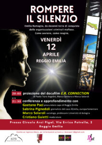 Venerdì 12 aprile al circolo Arci Pigal di Reggio Emilia, “Rompere il silenzio”, una serata ad ingresso libero volta a renderci più consapevoli e reattivi verso il fenomeno dell’infiltrazione mafiosa nelle nostre vite.