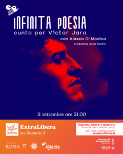 L’11 settembre 2025 ExtraLibera ospita lo spettacolo teatrale “Infinita Poesia. Cunto per Víctor Jara”, interpretato da Alessio Di Modica, produzione AreaTeatro.