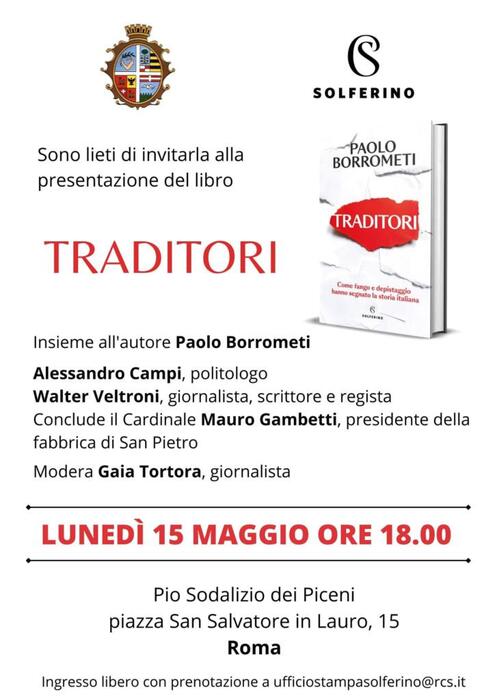 Il volume verrà presentato lunedì 15 maggio a Roma presenti, oltre all’autore, Walter Veltroni, Gaia Tortora, Alessandro Campi.
