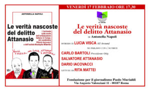 Venerdì 17 febbraio alle ore 17.30 nella sala della Fondazione Murialdi sarà presentato il libro di Antonella Napoli “Le verità nascoste del delitto Attanasio”.