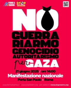 “Sabato 21 giugno, a Roma, da Porta San Paolo (Piazzale Ostiense) alle ore 14 fino al Colosseo, uniremo le nostre diverse lotte, culture, identità, appartenenze nella manifestazione nazionale ‘No guerra, riarmo, genocidio, autoritarismo’, mentre la guerra scatenata da Israele contro l’Iran può diventare globale, mentre prosegue il genocidio a Gaza e la guerra in Ucraina continua a seminare morte e distruzione”.
