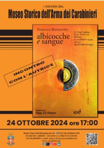 Giovedì 24 ottobre 2024, alle ore 17:00, nel Salone d’Onore del Museo Storico dell’Arma dei Carabinieri (Piazza del Risorgimento, 46), nell’ambito degli eventi culturali “I giovedì del Museo”, si svolge l’incontro con Francesca Bommarito, autrice del volume “Albicocche e Sangue”.