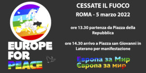 Sabato 5 Marzo, alle ore 13.30 da piazza della Repubblica a Roma partirà la Manifestazione Nazionale “Cessate il fuoco. Per un’Europa di pace”, convocata dalla Rete Italiana Pace e Disarmo e con l’adesione di numerose organizzazioni della società civile italiana per la pace tra cui Arci, Acli, Libera, Emergency, Legambiente, Cgil, Movimento Nonviolento, Un Ponte Per, Archivio Disarmo, Associazione ONG Italiane, Link 2007, Rete della Conoscenza, Anpi, Greenpeace e molte altre ancora.